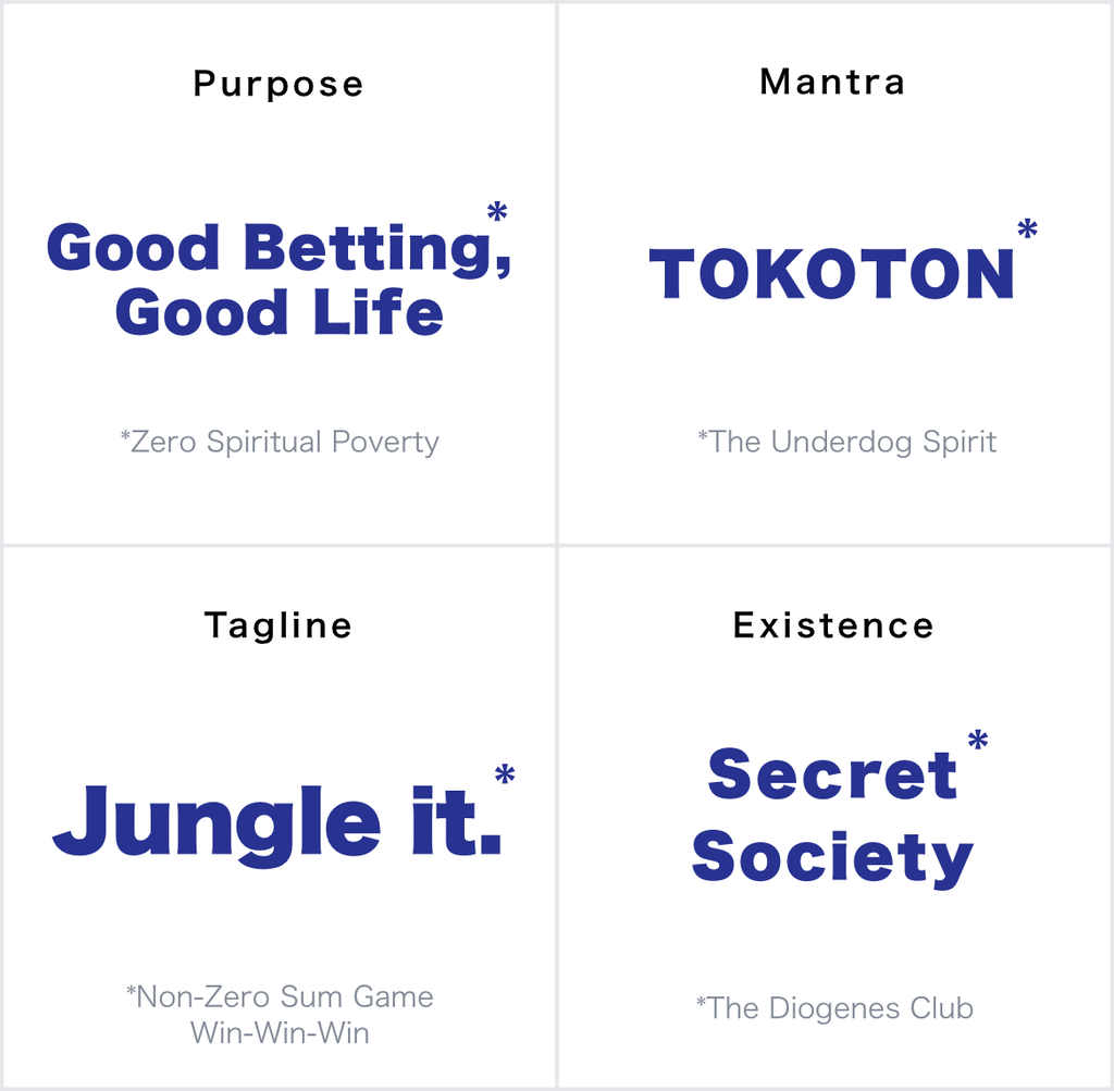 Our raison d'être is to design and develop products that are full of "poison", to create a sustainable betting experience that people can enjoy over the generation, to enrich the lives of those involved, and to be an inspiration to others.